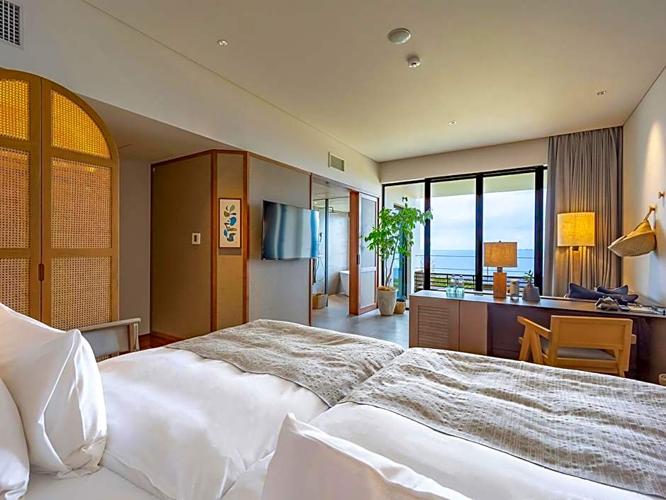The spacious twin room features air conditioning, a tea and coffee maker, a terrace with sea views as well as a private bathroom boasting a bath. The unit has 3 beds.